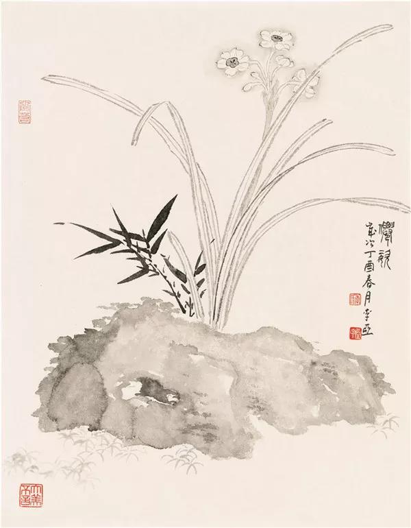中国画的黑和色是相辅相成关系,不抵触,不矛盾,但非驾轻就熟的高手所不能为,李亚很好解决了色墨之间的关系,他的画没有病态文人的无病呻吟,没有自赏自足的闲花逸草,反而处处透出浓烈和蓬勃的朝气。尤其是他的花鸟画,总是带给人鲜活的美感,雨露滋润而百卉芬芳,水气灵气跃然纸上,其用笔力能扛鼎,是源于他深厚的篆籀之功,以书入画,中锋为主力透纸背,墨与色相映生辉,韵味无穷。